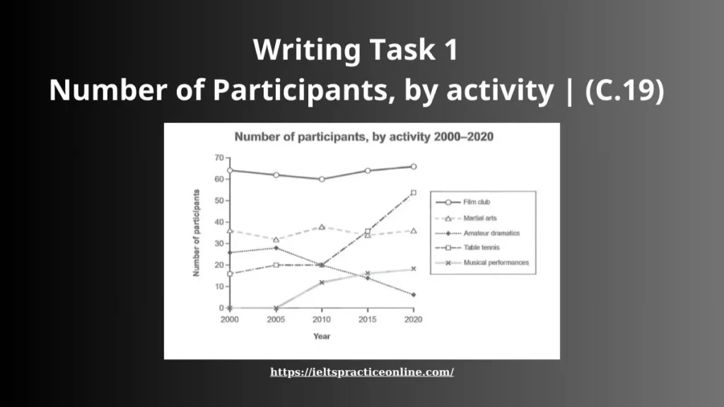The graph below gives information on the numbers of participants for different activities at one social centre in Melbourne, Australia for the period 2000 to 2020.