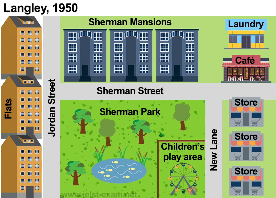 The two maps show the town of Langley in the years 1910 and 1950 and the urban developments that took place. Over this 40-year period, there were a number of notable changes to the buildings and amenities of this area.